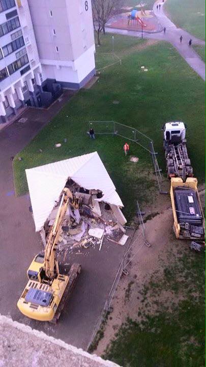 Et le prochainement détruit a été rapide, puisque le « local technique » vient d’être détruit. Et oui, je n’ai à ma connaissance jamais vu une décision appliquée aussi rapidement.